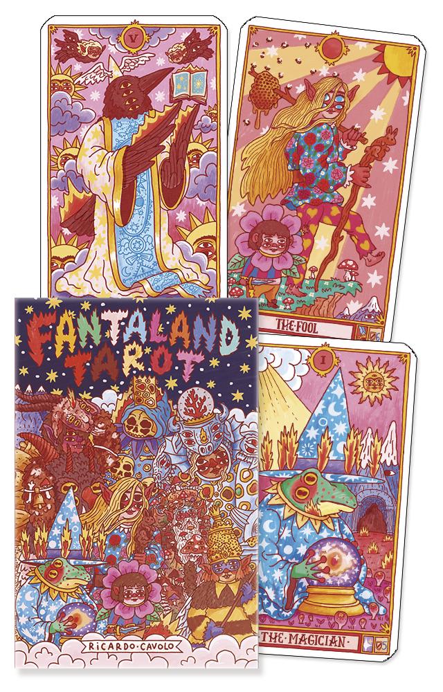 Celebrated Spanish artist Ricardo Cavolo presents a true, heart-felt love letter to the fantasy genre we know and love. He fills this amazing deck with bizarre characters who impersonate the 78 Arcana of the Rider-Waite-Smith system. The extended book of this kit edition goes over the lore and meanings of the cards, the reading techniques, as well as the rules of a card game that two or more persons can play with this single—and singular—deck.