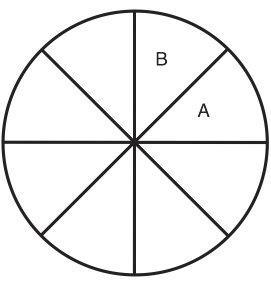 In actuality, some people have pieces of the pie that are larger and others have pieces that are smaller, but everyone gets a piece of the pie. Now here’s the problem. Many people think that in order for you to get more you must extend the sides of your piece of pie and someone else must get less. Here’s an image of what that idea looks like showing how if A gets more, B gets less: